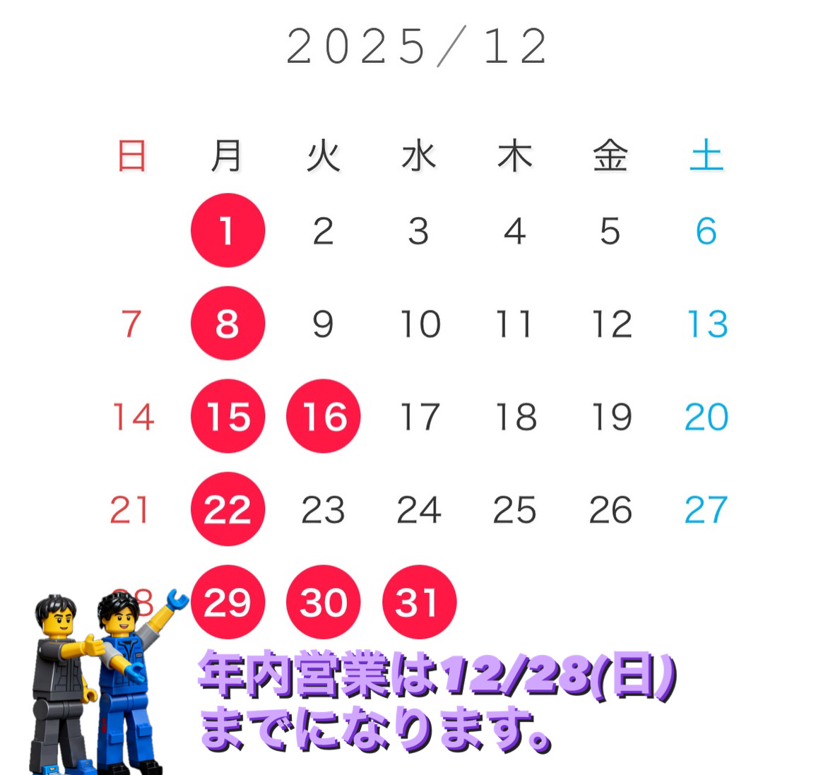 トレックスは2025年12月および年末年始につきまして、下記のとおり休業とさせていただきます。